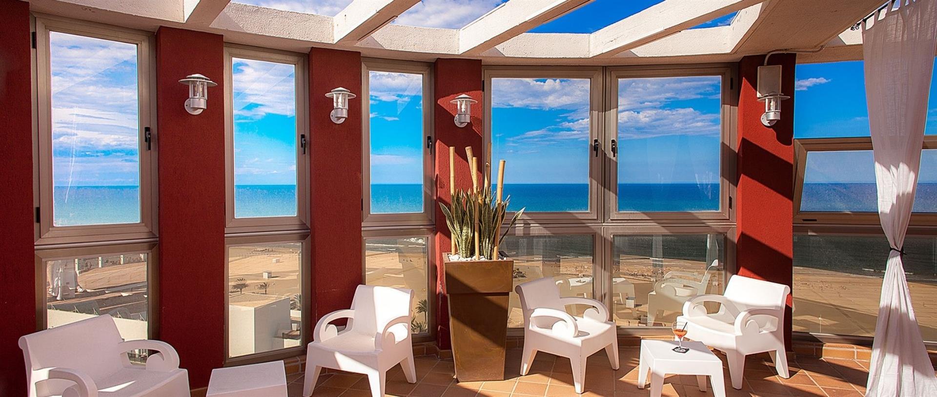 Destaca en Hotel RH Gijón en Gandía nuestro completo Spa en Gandía en el que podrá relajarse en el baño turco, jacuzzi, duchas bitérmicas y mucho más. Así mismo, nuestra terraza ChillOut en la 12ª planta del hotel, abre sus puertas los meses de verano para que los huéspedes puedan relajarse bebiendo un delicioso cóctel al tiempo que admiran la fantástica panorámica de la playa de Gandía.